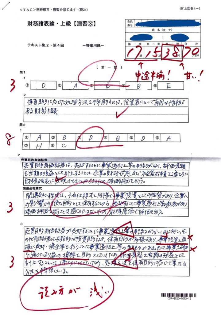 そしてまた肝心の成績はというと… 財務諸表論の基礎期のテストでは上位16%や7%に入れたものもあり、序盤は比較的順調でした。簿記論は、だいたい上位50%台平均に位置していました。1年目はずっと財務諸表論に対する苦手意識があり、簿記論のほうが点数が取れていたのですが、2年目で財務諸表論の計算に慣れてきて、状況が逆転していきました。