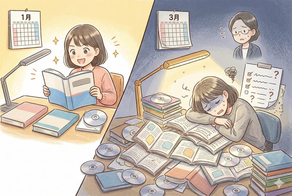 これまでのブログでは、過去の試験を振り返って書いていく形式が中心でした。でも今回初めて、リアルタイムの進捗をお届けしました。書いていて気づいたのですが、「過去の自分」を振り返るより、「今の自分」をさらけ出す方が、何倍も恥ずかしい。できていないことが、現在進行形でそこにあるからです。