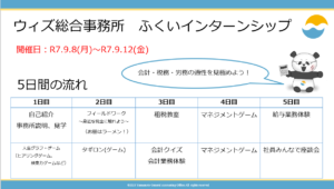 5日間のインターンで、ウィズ総合事務所の雰囲気や仕事内容、目標などが分かりました。各種ゲームでは、業務で必要となる会計・税務以外のスキルをためし、自分が会計業界に適性があるのかの判断材料になりました。